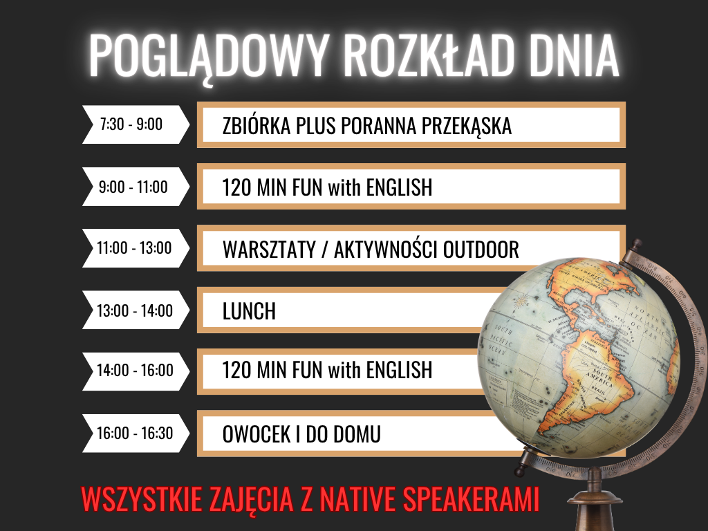 angielską przygodę w godz. 7:30 - 16:30